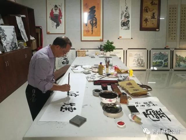 2017年11月12日下午,福建省书法家协会会员、惠安县青年书法家协会创会会长吴国琛老师等人,来到福建省智善慈航书画院泉州娲媓宫创作基地开展交流书法活动。这也是吴老师第三次到基地来,从数次交流中得知智善慈航书画院和智善慈航多年坚持公益的善举,很受感动,表示愿意尽一份心意参与到书画院的公益活动中来,吴老师当场挥毫泼墨为书画院贡献墨宝。